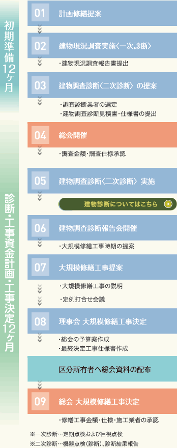 いつまでも快適にマンションで暮らすためには、つねに先を見すえた対策が必要です。穴吹コミュニティでは、長年培ってきたノウハウや経験を活かし、ご入居後30年間にわたる最適で無理のない長期修繕計画案をご提示。また、定期的な周期において見直しを行い、より現実に即した内容でそのつどご提案いたします。